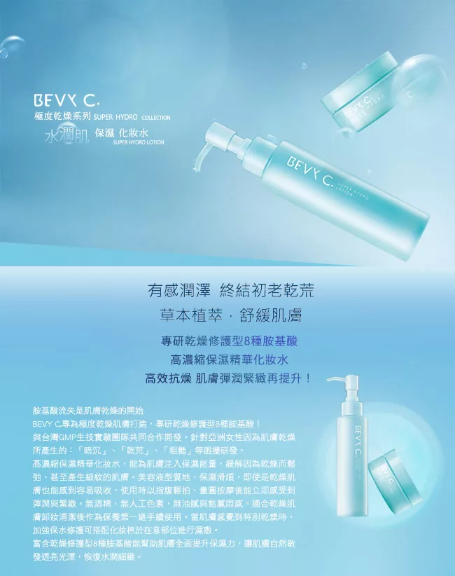 ?高濃縮保濕精華化妝水,富含乾燥修護型8種胺基酸