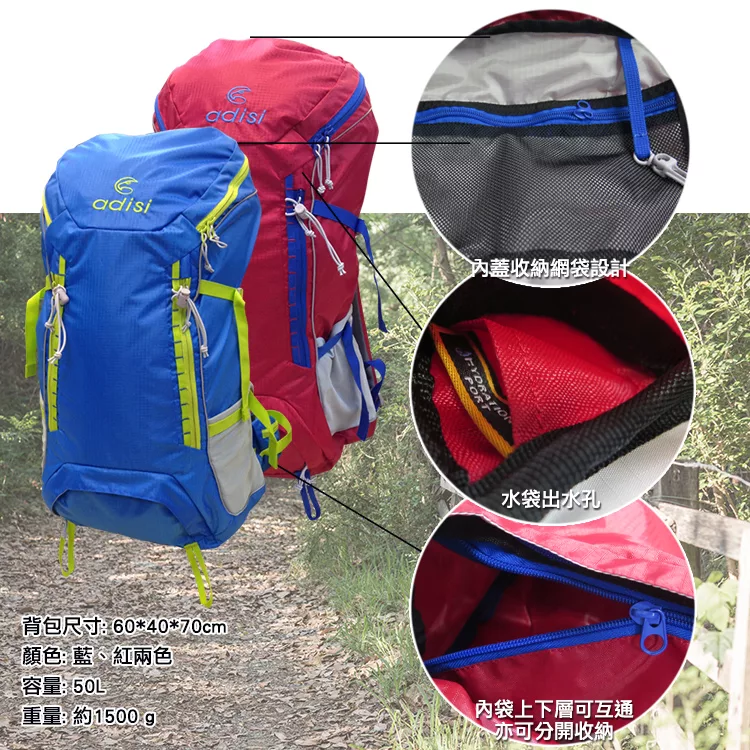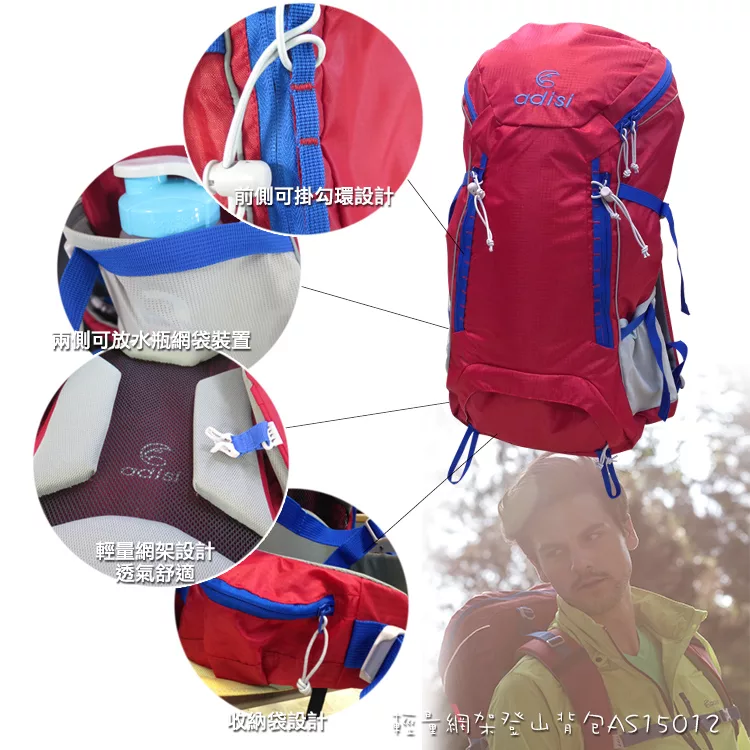 商品推薦:ADISI 輕量網架登山背包AS15012 - 城市綠洲 (登山背包、輕量登山包、後背包、健行)藍