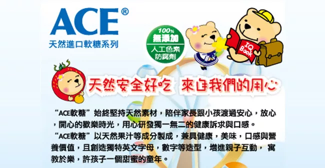 自然好味道一吃就知道,堅持不添加人工色素、防腐劑是ACE軟糖的堅持。